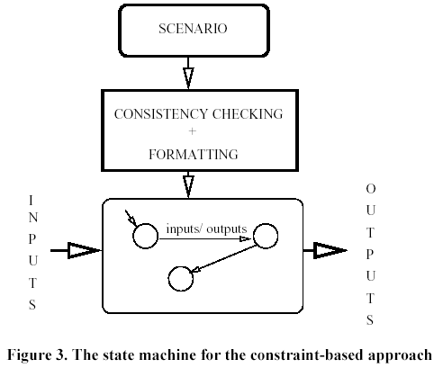 Constraint-based approaches are based on constraint programming and are characterized by a formatting phase that computes starting times and durations, as required by the scenario. This formatting phase can be seen as a compilation of a declarative specification into an operational structure, which can be interpreted by the presentation phase. Thus, the author specifies what scenario he needs without involvement of how to get the result in terms of operational actions, in a declarative way.