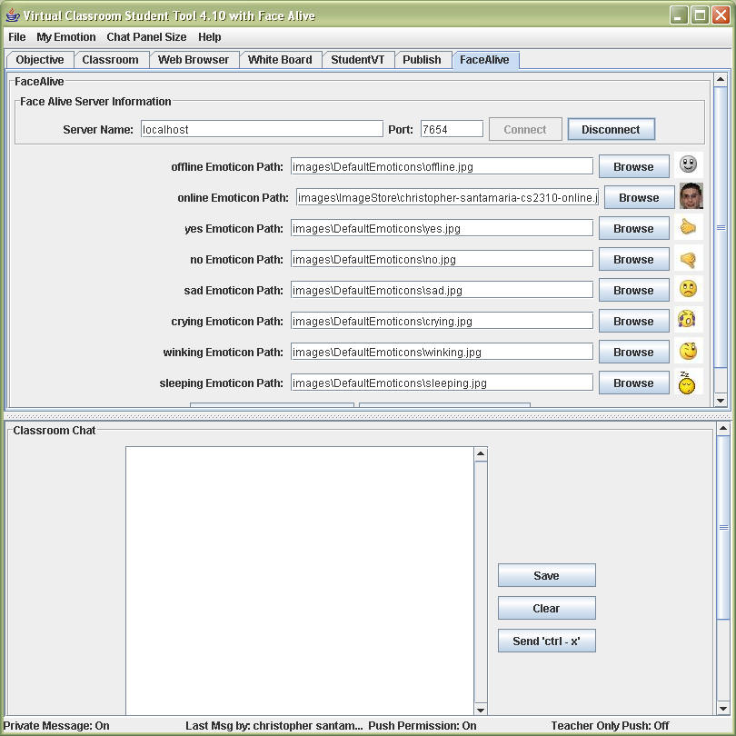 Once you are done uploading, or downloading emoticons from the Image Server it is important to disconnect. This frees resources on the Image Server so that others may use it.