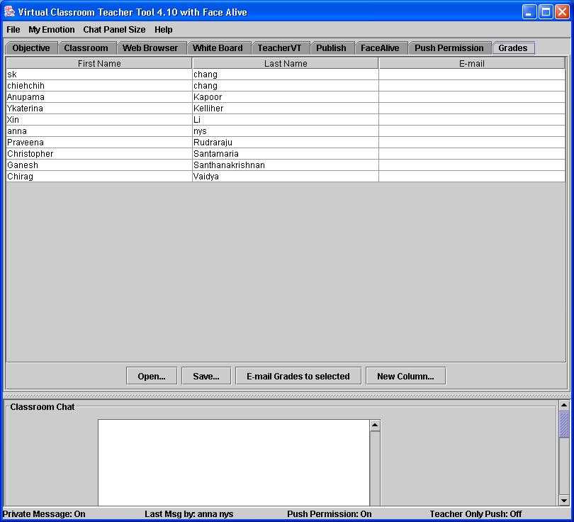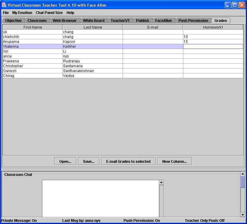 The Grade Book module loads the student list as soon as the teacher tool is run.