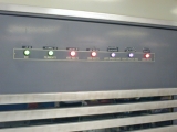 | L-R Vic, Roy, Chris and Jim checking modulation | L-R Roy, Chris and Vic adjusting power | PA cabinet operating -- Green LEDs indicate active modules |