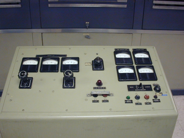 | 1939 Westinghouse transmitter | Tube from 1939 Westinghouse transmitter | Controls for 1939 Westinghouse transmitter |