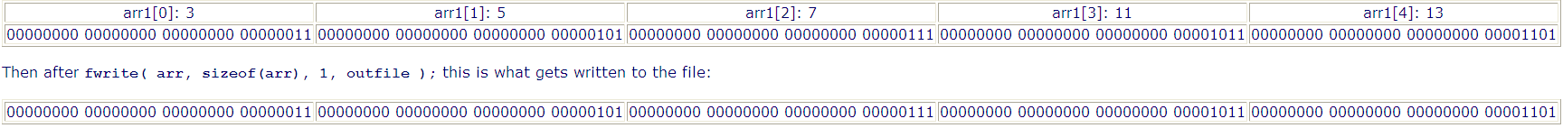 | Write using fwrite as in: | int result = fwrite( &i, sizeof(i), 1, binaryFile ) |